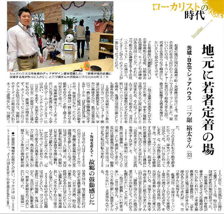 「ローカリストの時代」というテーマで、CSR事業の地域貢献型シェアハウス「コクリエ」について取り上げていただきました。