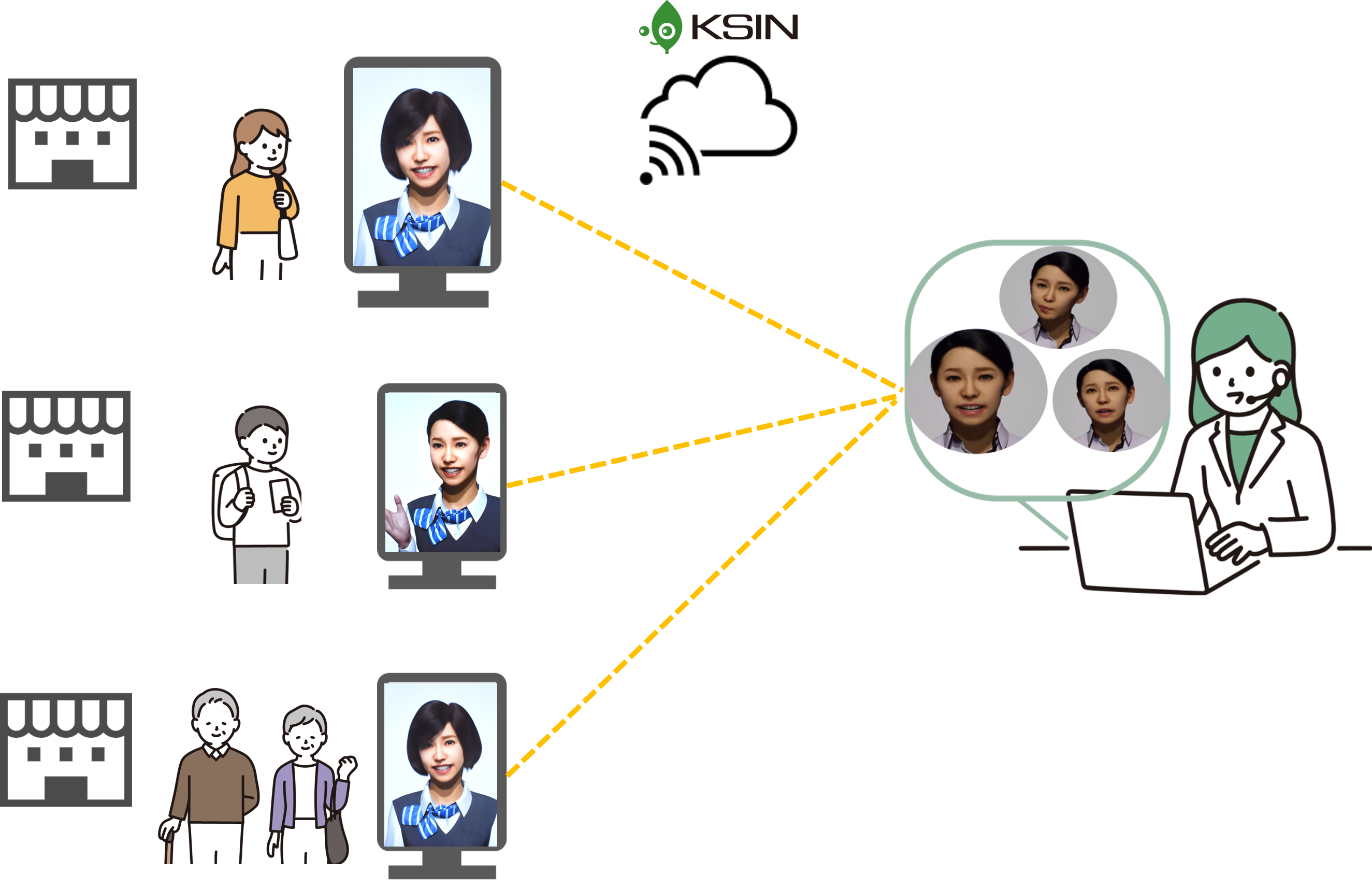 ・「KSIN」は、アバターによる見た目の印象をブランディングできるため、接客する者の個々の外見に左右されにくい特徴があります。また生成AIやチャットボットと比較した際、バックグラウンドで人が対話に対応するため、複雑な会話に対して人間味あふれるコミュニケーションが可能であり、単なる問い合わせだけなく、相談事や悩み事など複雑な会話かつ柔軟で幅広い対応が可能であると考えております。自治体や金融機関、企業の人事部門など利用者の個人的な情報を含む接客対応が必要な場面で、プライバシーを守りながら安心して接客ができる空間として活用いただけます。