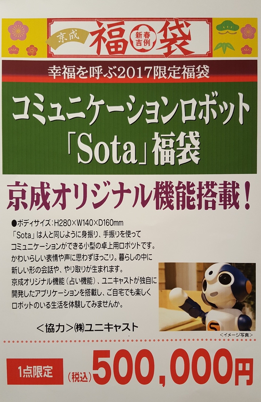 コミュニケーションロボットSotaが水戸京成百貨店様の2017年の福袋で登場!